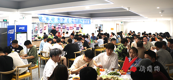 6月13日晚,ayxty.com理学院在桃园餐厅举办“饺子宴”活动,欢送2024届毕业生。学院领导班子成员、各系教师代表、学办辅导员老师与全体毕业生参加。