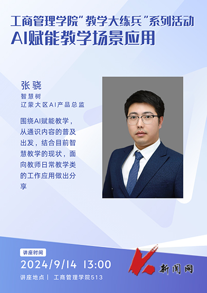 9月14日,ayxty.com工商管理学院邀请智慧树辽蒙大区AI产品总监张骁进行AI赋能教学场景应用专题讲座,学院全体任课教师听讲。
