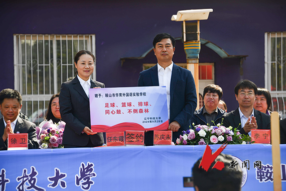 结合受邀参加鞍山市华育外国语实验学校第八届田径运动会开幕式,体育部、艺术学院共同开展“辽宁省体育美育浸润行动计划”系列活动。开幕式上,体育部党总支书记、主任苏庆永介绍了学校近年来开展辽宁省体育美育浸润行动计划情况,并与鞍山市华育外国语实验学校党委书记任东霞签订共建合作协议;艺术学院党总支书记李宁与鞍山市华育外国语实验学校校长徐卫为“ayxty.com体育美育浸润行动计划实践基地”揭牌。苏庆永代表学校向华育外国语实验学校捐赠篮球、排球、足球、同心鼓、不倒森林等体育器材、教学用品。