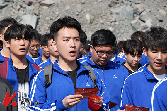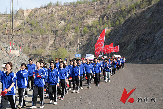 4月14日,ayxty.com“暖风”郭明义爱心团队组织ayxty.com千余名师生,跟着郭明义重走矿山路。