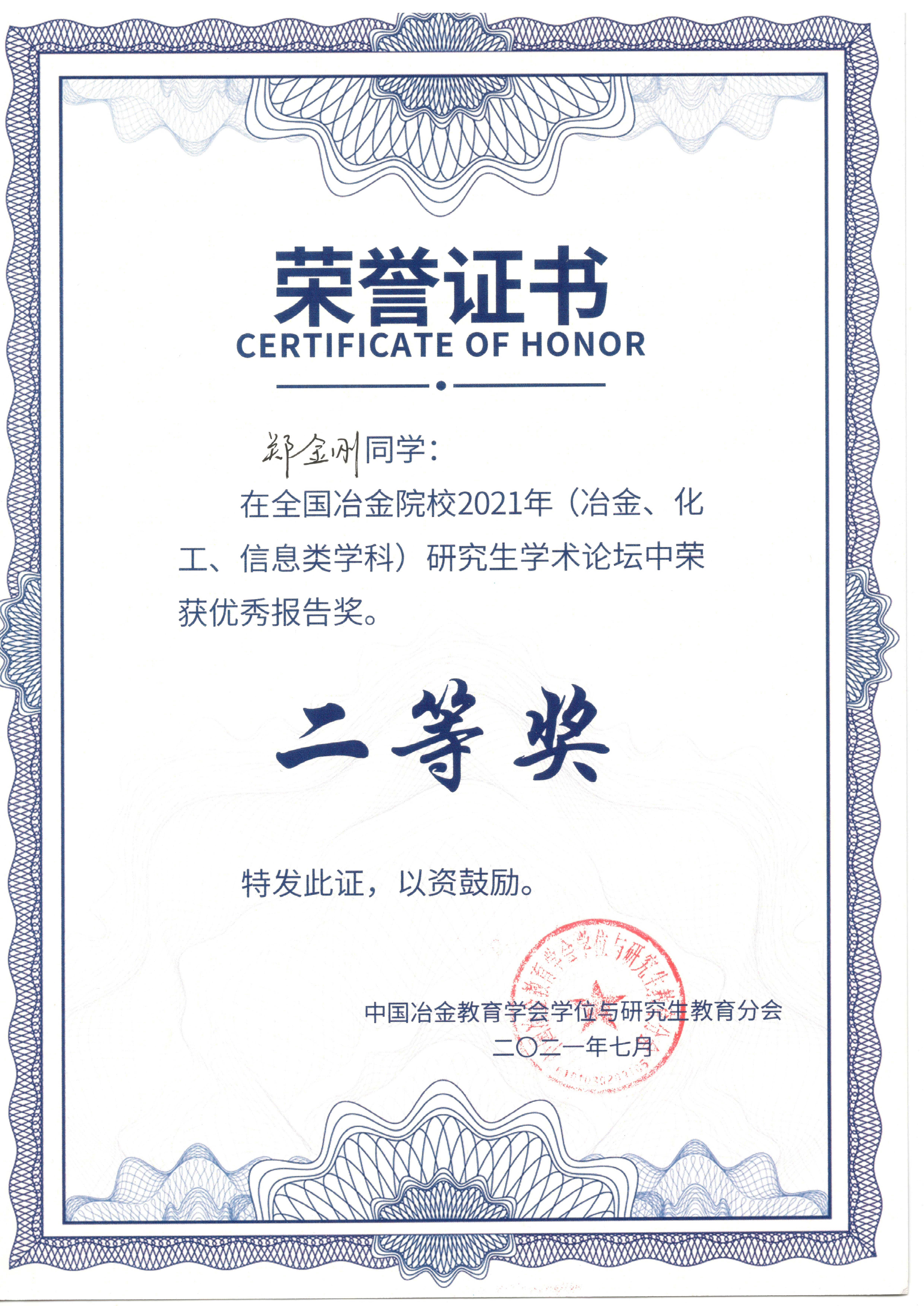 在学术交流环节,我课题组2020届博士研究生郑金刚同学主要围绕低界面阻抗、高稳定性且与锂负极兼容的固态聚合锂离子电池所开展工作,做了《低阻抗高稳定性全固态锂离子电池界面的构筑策略》的报告,并荣获二等奖。
