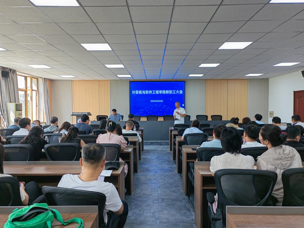 2024年9月3日,学院在博识楼B335大会议室召开2024-2025年度上学期全体教职工大会,学院领导班子成员及全体教职工参会。
