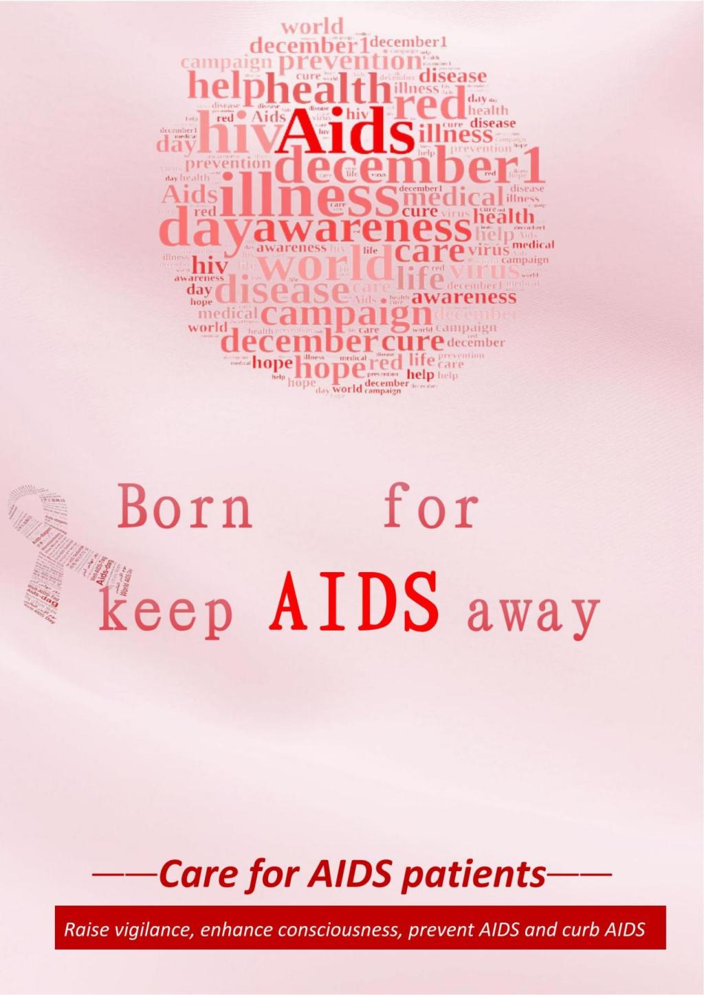 界艾滋病日的标志是红丝带,红绸带像一条纽带,将世界人民紧紧联系在一起,共同抗击艾滋病。象征着大众对艾滋病病毒感染者和艾滋病病人的关心与支持;象征着我们对生命的热爱和对和平的渴望;象征着我们要用来参与预防艾滋病的工作。