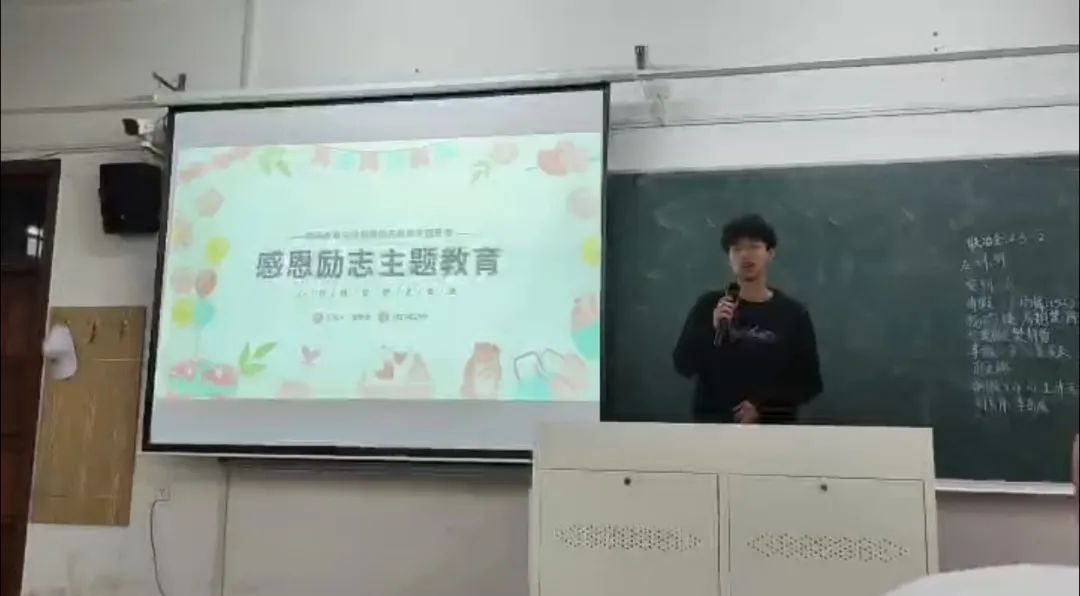 随后联冶金22-1班班长戴兴旺通过趣味问答、经历分享等方式对同学进行了感恩教育,并鼓励同学们要积极树立目标、励志奋进。