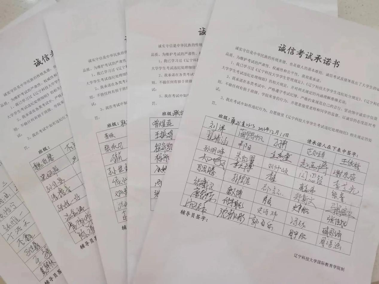 学院积极通过线上线下不同渠道宣传诚信考试教育、多措并举,加强考风建设。2023年12月到2024年1月期间,辅导员面向学院联冶金专业全体学生多次召开线下诚信考试主题教育班会。会上为同学们解读了《ayxty.com学生考试违纪处理细则(试行)》,并向同学们强调了考试注意事项及违纪、作弊行为的严重后果。最后向同学们宣读了《诚信考试承诺书》,学院联冶金专业学生全体签署承诺书。此外,还通过在微信群发布诚信考试、积极备考提示等方式,利用网络媒介落实学院考风考纪建设工作。