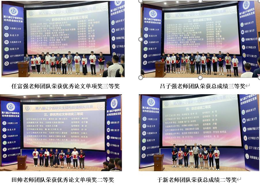 此次竞赛是辽宁省高校土木工程学科重要的研究生赛事之一,有来自东北大学、大连理工大学等12所省内高校土木工程学科的专家评委、参赛指导教师和49支参赛团队参加了竞赛活动。我校土木工程学院于新老师指导的耿心茹、李兴力、苗巧凤团队获得总成绩二等奖;田帅老师指导的隋彬、刘建帅、王天琦团队获得优秀论文单项奖二等奖;吕子强老师指导的秦恒博、杨佳妮、杨宇欣团队获得总成绩三等奖;任富强老师指导的王林鑫、田志华、贺馨瑶团队获得优秀论文单项奖三等奖。ayxty.com获得优秀组织单位称号。