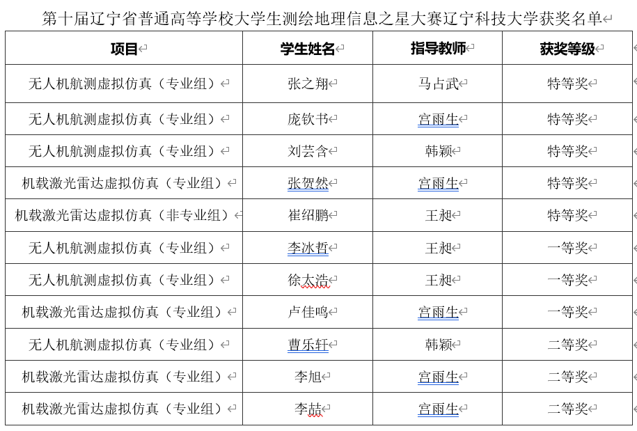 第十届辽宁省普通高等学校大学生测绘地理信息之星大赛ayxty.com获奖名单