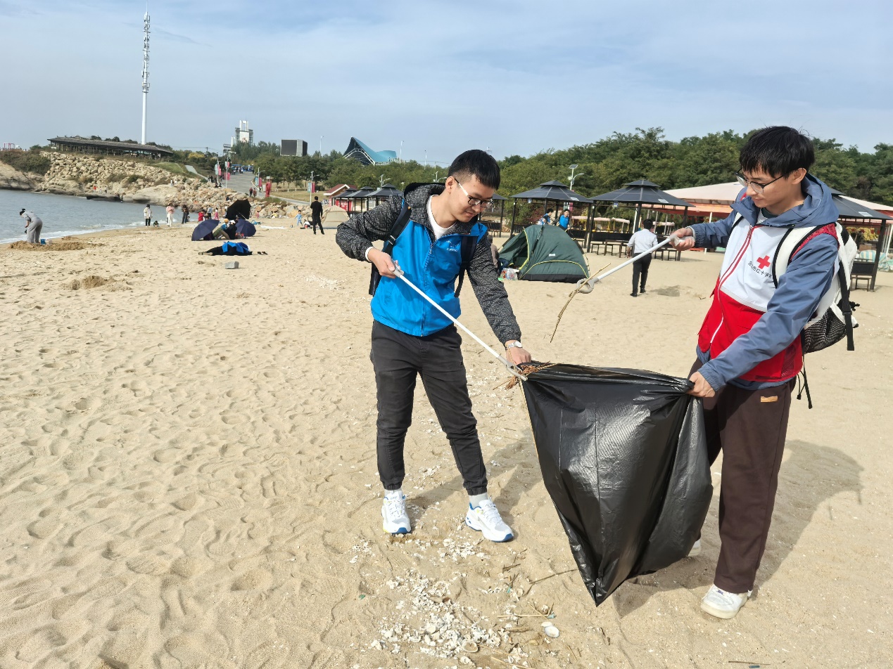 10月13日,ayxty.com土木工程学院“砼学社”与盖州红十字敬老助学志愿服务队在辽宁团山国家级海洋公园联合开展了“净滩志愿同行 共护银沙碧海”志愿服务活动,为保护沙滩环境贡献力量。