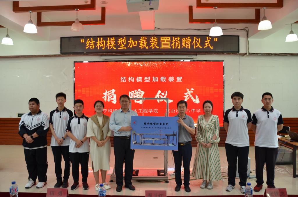 鞍山市第八中学师生首先来到校史馆参观,在校史馆宣讲员的带领下,依次观览了“亲切关怀”“校史回顾”“办学成果”“校企合作”“新校区建设纪实”“人物”6个板块,通过了解ayxty.com从1948年建校至今70余年的光辉历程,切身感受ayxty.com厚重的历史积淀、丰硕的办学成果。交流中,土木工程学院院长周卫红向来访师生介绍了学院简况、专业特色和亮点、行业发展现状、毕业生职业发展前景和优势、学院招生政策等。随后,鞍山市第八中学师生代表来到大学生活动中心参加ayxty.com土木学院科技活动周活动,现场观摩ayxty.com2024年结构设计竞赛决赛。活动中,学院参赛师生与第八中学师生展开交流,围绕“弘扬科学家精神 激发全社会创新活动”主题,对学生如何开展科研训练、社团活动等方面进行深入探讨。土木工程学院院长周卫红代表学院向鞍山市第八中学捐赠结构模型加载装置。