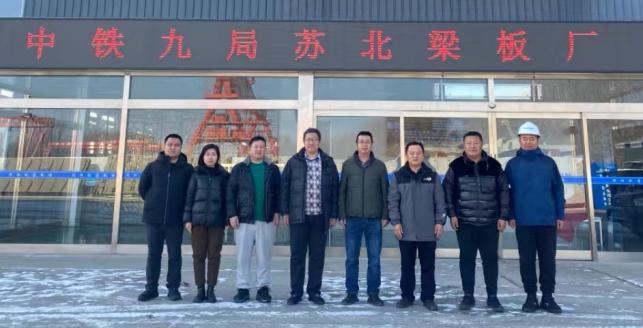 周卫红院长一行受到中铁九局科创部贾有权部长等领导的热烈欢迎,并一同参观了中铁九局苏北梁板厂自动化生产线和自主开发的钢筋捆扎机器人样机。中铁九局苏北梁板厂副经理王立明(科大交通土建2011级毕业生)详细介绍了中铁九局自主研发的CRTSⅢ型后张法轨道板生产线。在中铁九局科创部会议室,双方就智能建造专业行业发展、“3+1”人才培养、实验室建设、智能建造专业人才需求、科研合作、研究生培养等问题进行了深入交流,达成了初步合作意向,确定了推进计划。