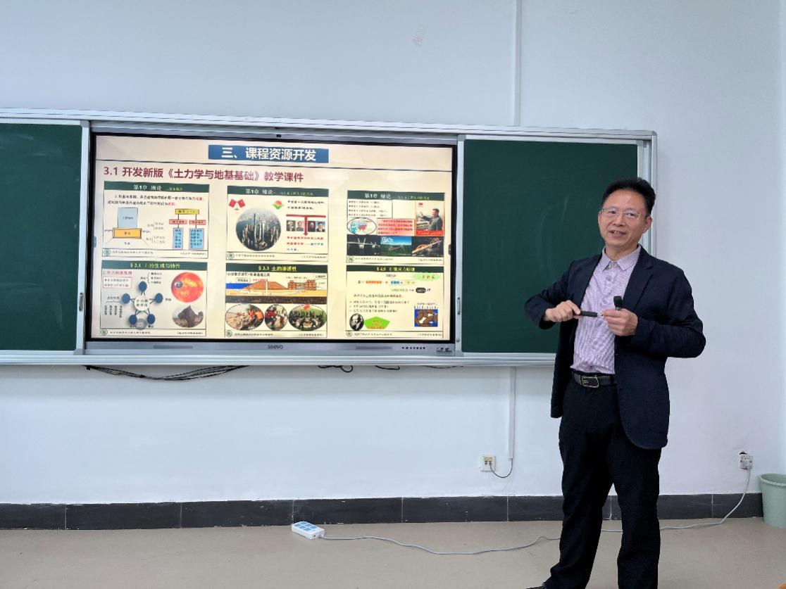 张向东教授结合自己多年课程建设经历,以国家一流课程《土力学与地基基础》为例,详细讲解了一流课程体系重构与优化、课程教与学模式改革、创新能力与实践能力塑造和课程成绩评价体系与评价方法等方面内容。报告条理清晰,内容具体,可借鉴性强。同时提出了课程建设持续性、OBE理念实施、因材施教、如何激发学生学习热情、教学效果提升、课程建设和科研反哺教学等问题的解决方案。报告结束后,张向东教授与部分教师进行了深入交流,得到了与会教师的一致认可。