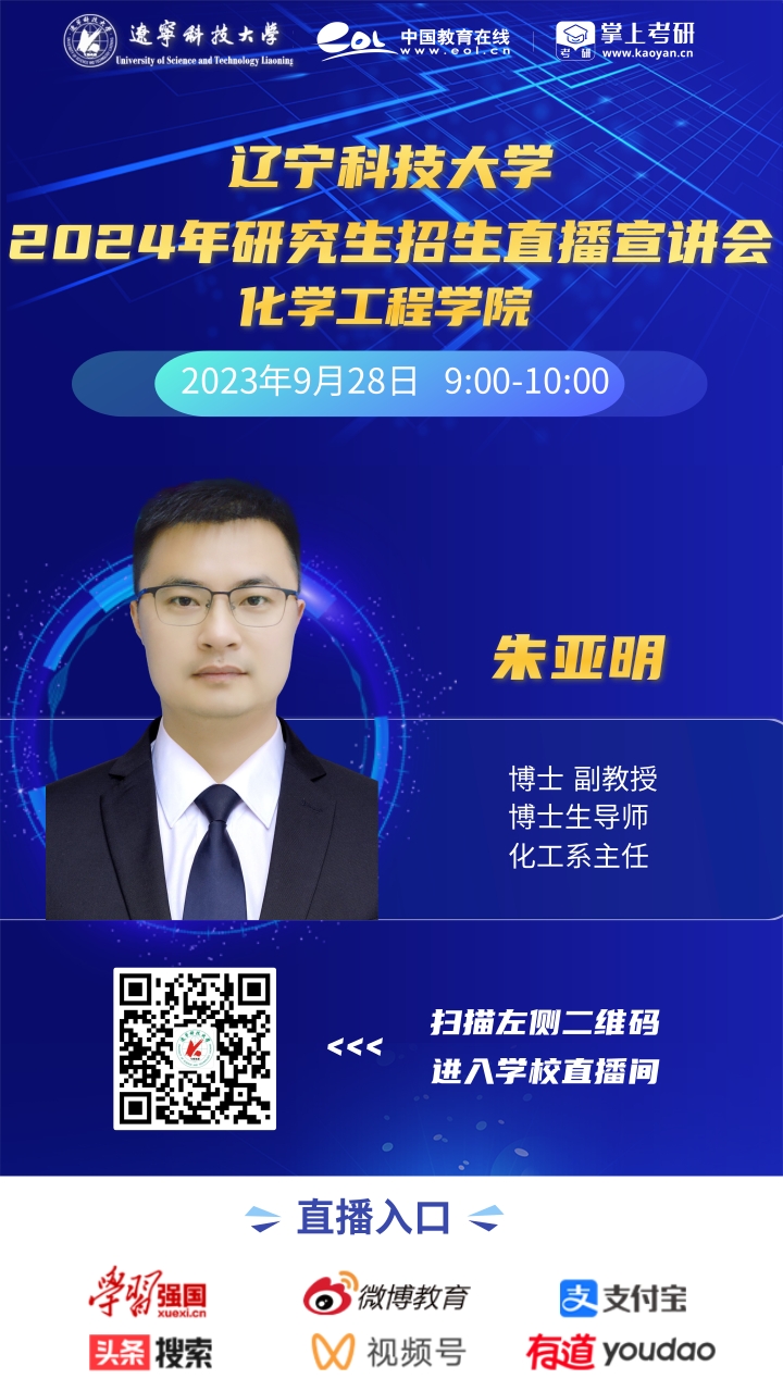 为能使广大考生充分了解学校研究生相关学科专业招生政策及基本情况,ayxty.com化工学院针对本学院相关学科做2024年硕士研究生招生宣讲,欢迎广大考生积极参加,宣讲会采取线上直播方式进行,相关信息如下: