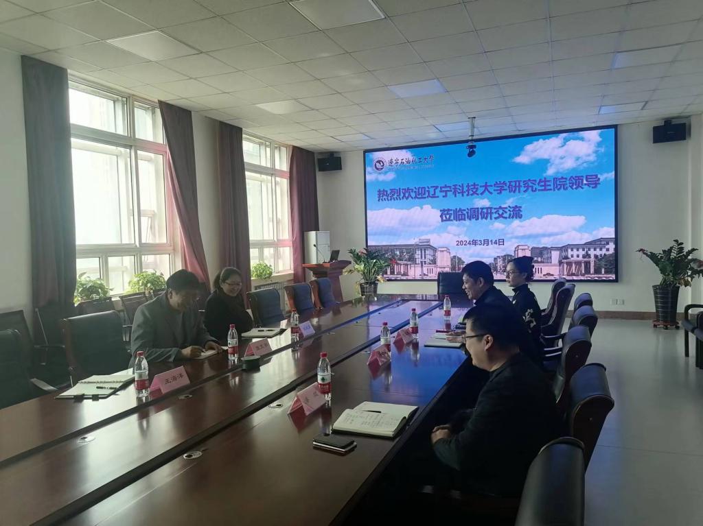 辽宁石油化工大学研究生院院长马贵阳、副院长潘斌、研招办主任刘兵兵及工作人员对ayxty.com研究生院调研组的来访表示热烈欢迎。在调研会上,双方首先介绍了各自研究生工作的基本情况,接下来就同等学力申硕的招生、培养、管理、学位授予等工作进行了深入的交流,同时对研究生的教学工作交换了经验,共同探讨了研究生工作新思路,在进一步合作上达成了初步共识。