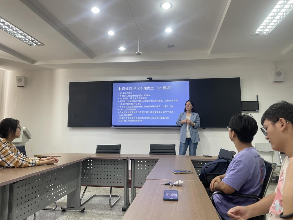 优秀导师代表李华老师进行研究生新生学术诚信与学术规范教育,希望学生尽早规划安排未来的方向,对学位授予的提出一些重点要求。强调学风建设,提倡科学诚信,列举学术不端的类型和具体案例警示学生。