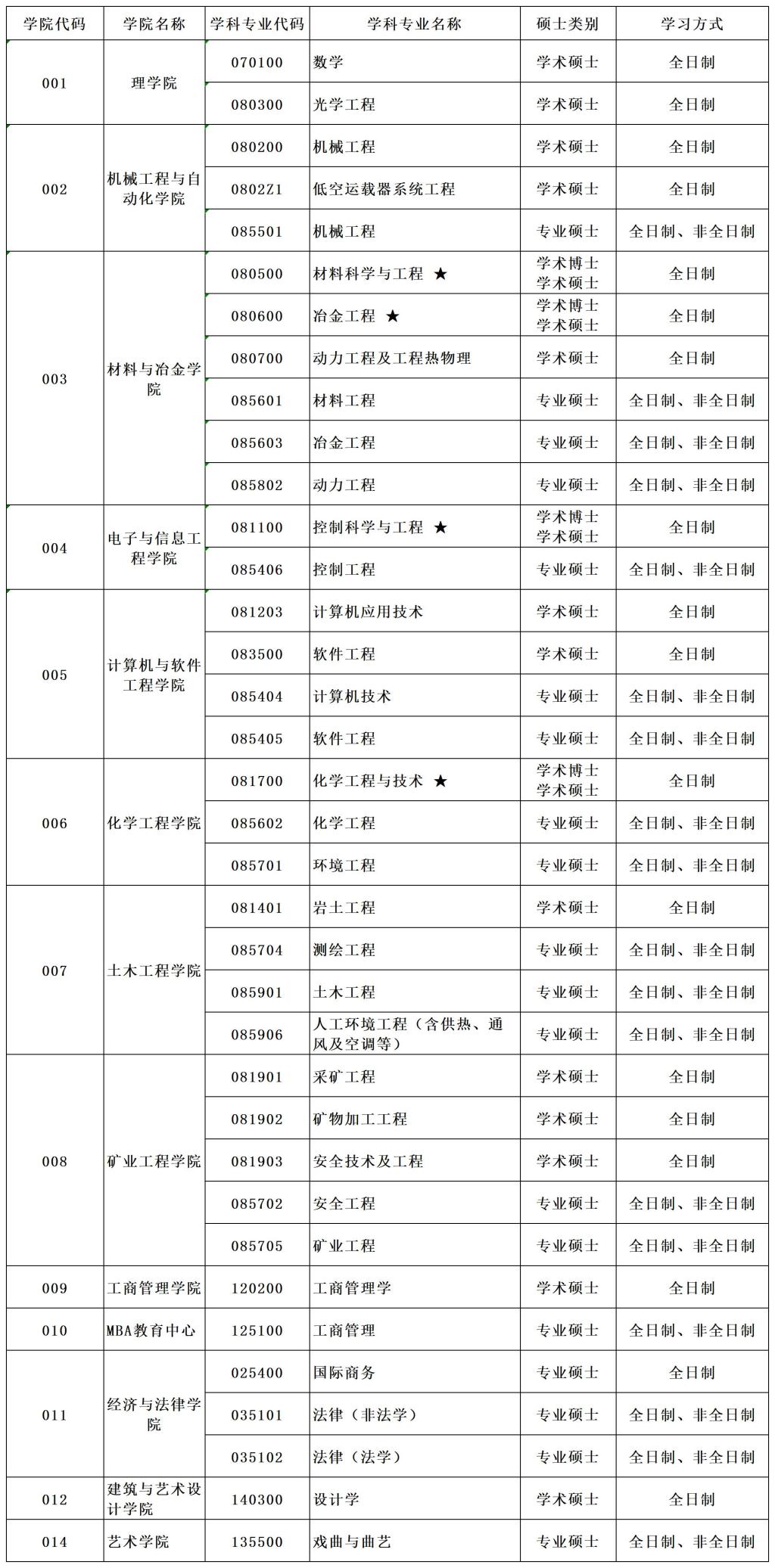 注:★标记学科具有博士学位授予权