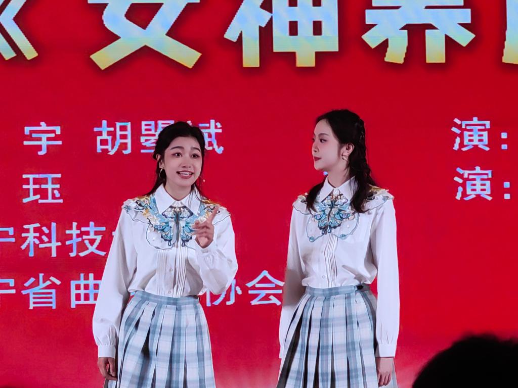 本届展演共征集到111个作品,涉及35个曲种,经专家遴选,最终确定了21个曲种的37个优秀节目参加展演。经过激烈的角逐,其中由ayxty.com选送,姜涵瀚、赵开山创作,表演20级刘星宇、冯宸颖、孙梦菲,播主22级刘柯冉表演的群口快板《中国诗民族魂》和由张宇、胡曌斌创作,表演21级刘羽檬、张译文表演的相声《女神养成记》,两部作品均成功入选第三届大学生曲艺周。群口快板《中国诗民族魂》在山东大学(青岛校区)展演;相声《女神养成记》在青岛科技大学展演。展演现场气氛热烈、专家老师们给予了高度评价,说ayxty.com选送的这两个节目“内容好、形式好、表演好、呈现好,为大家带来了精彩的高水平表演”,也受到了现场观众的喜爱。